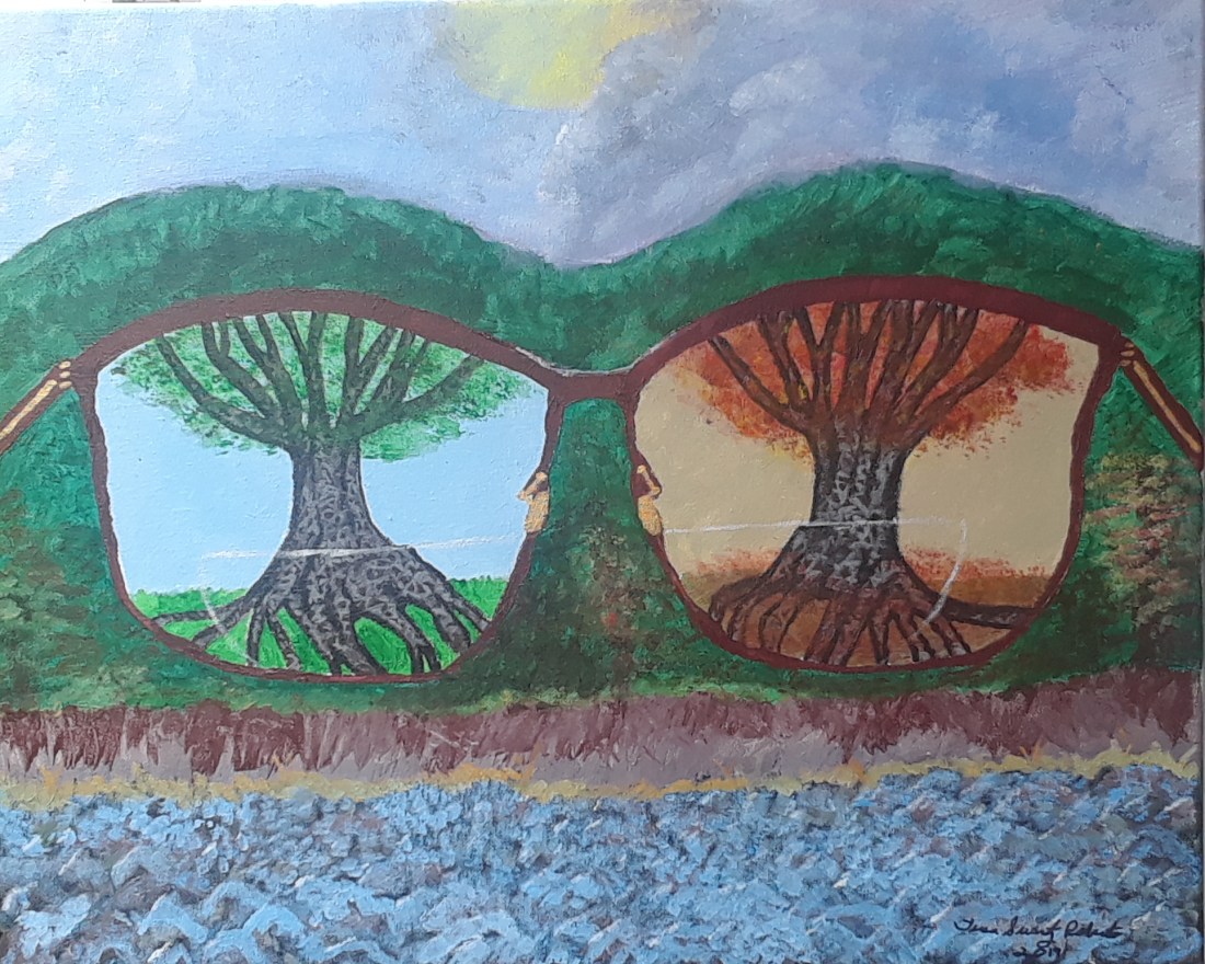 By Teresa Swartz Roberts Blog post 36. Copyright 2020 My painting says more than my words are able to. I call it Life Through the Lens of Parkinson's.